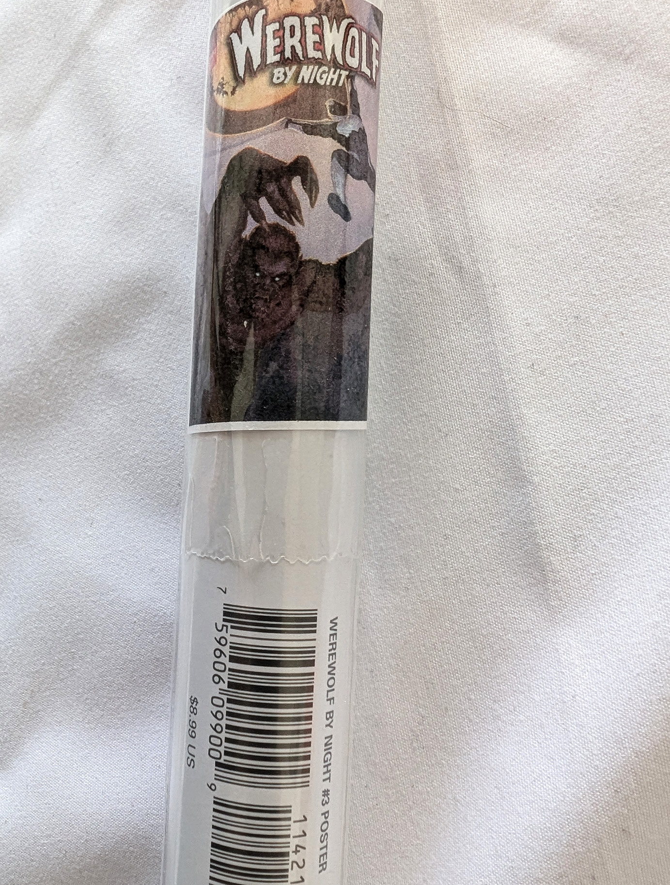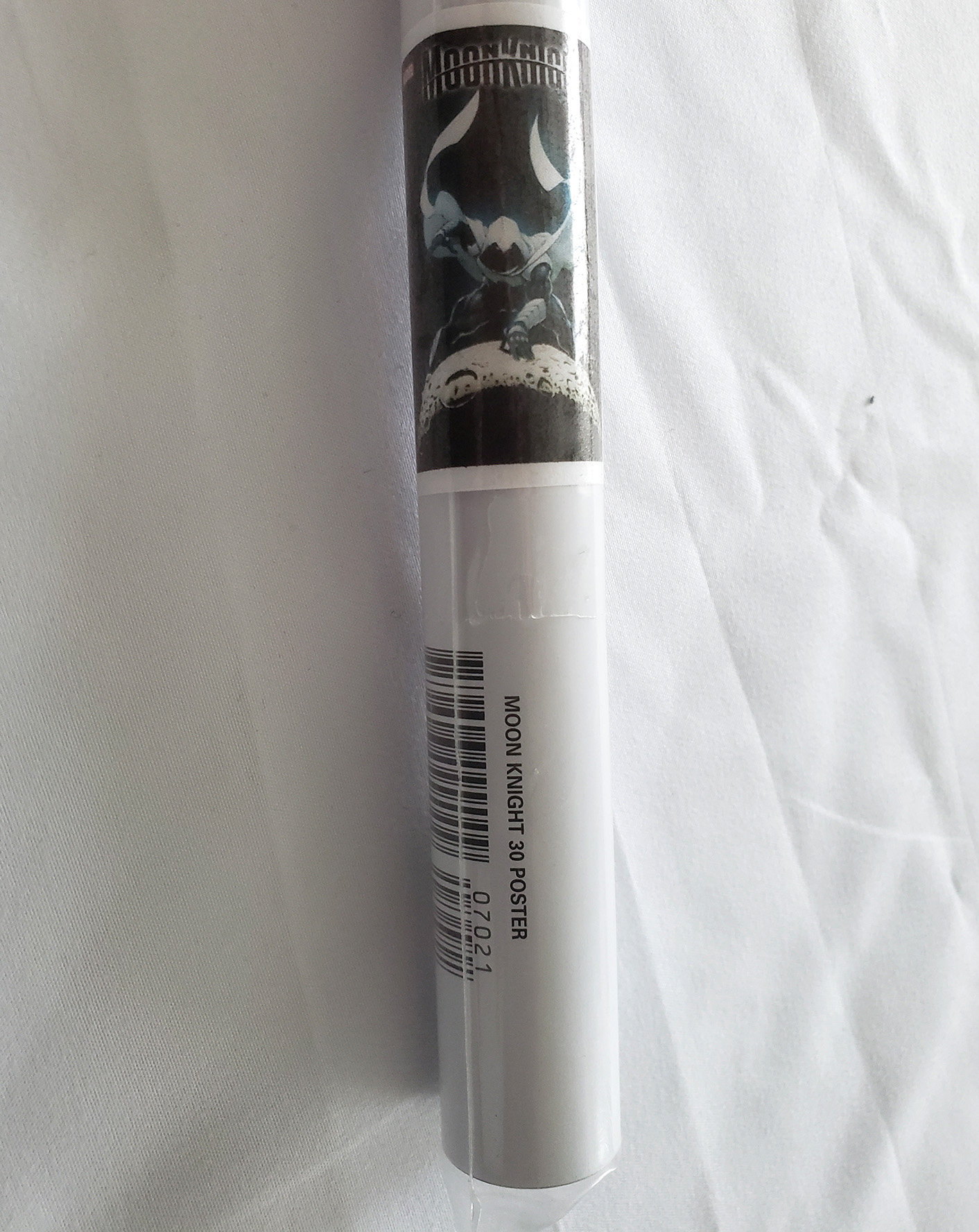 This 2010 poster is an enlarged reprinting of the Vengeance of the Moon Knight #1 cover that came out the same year. It is printed in a standard 24x36 inch size. (Note, the open picture is a stock image, as mine is still unopened)