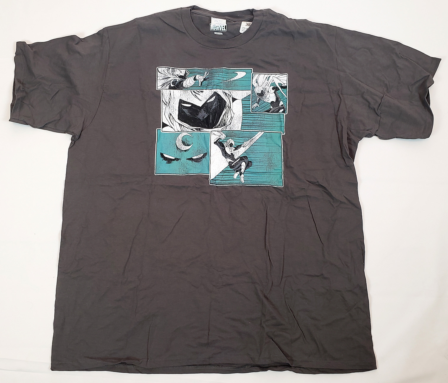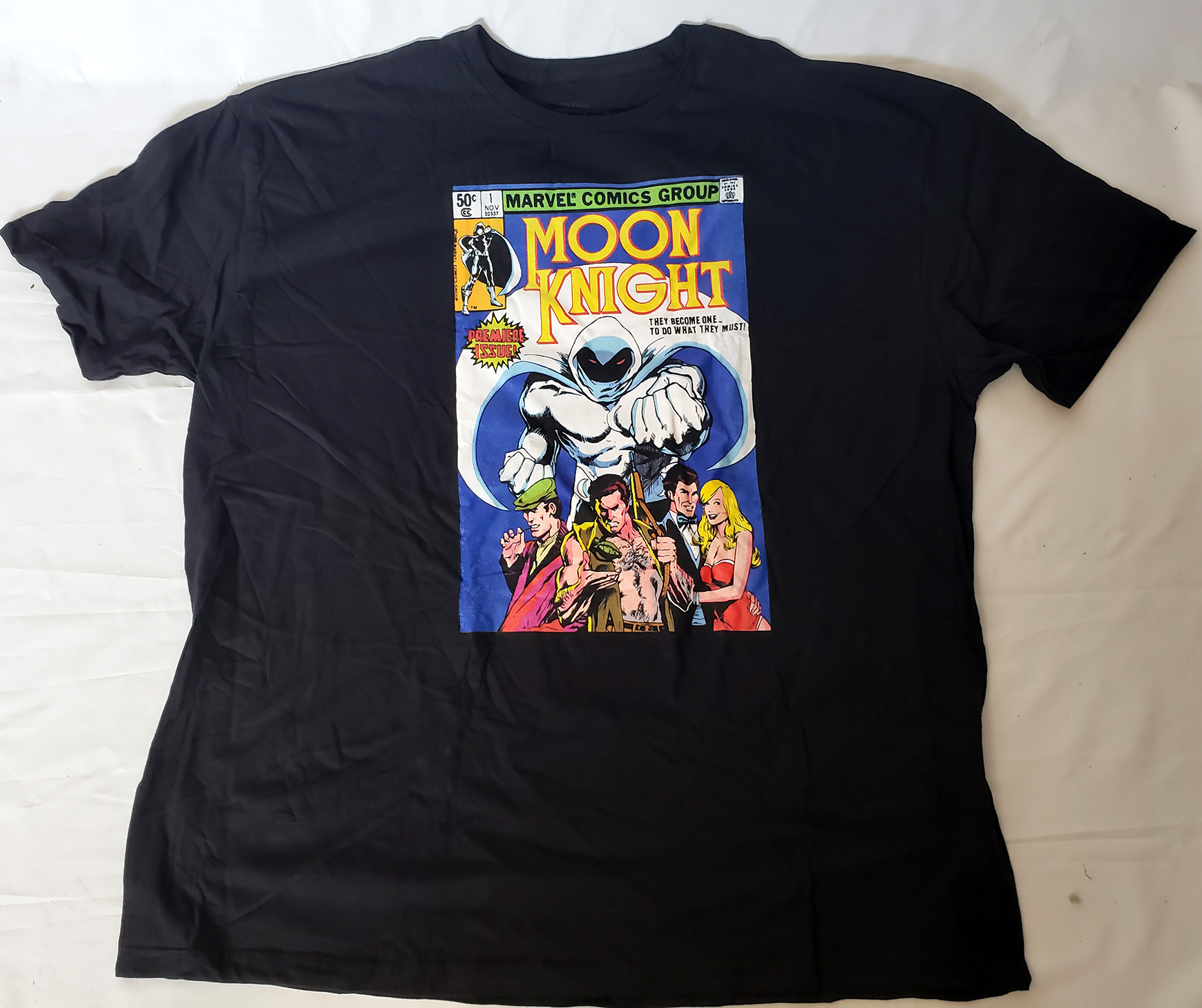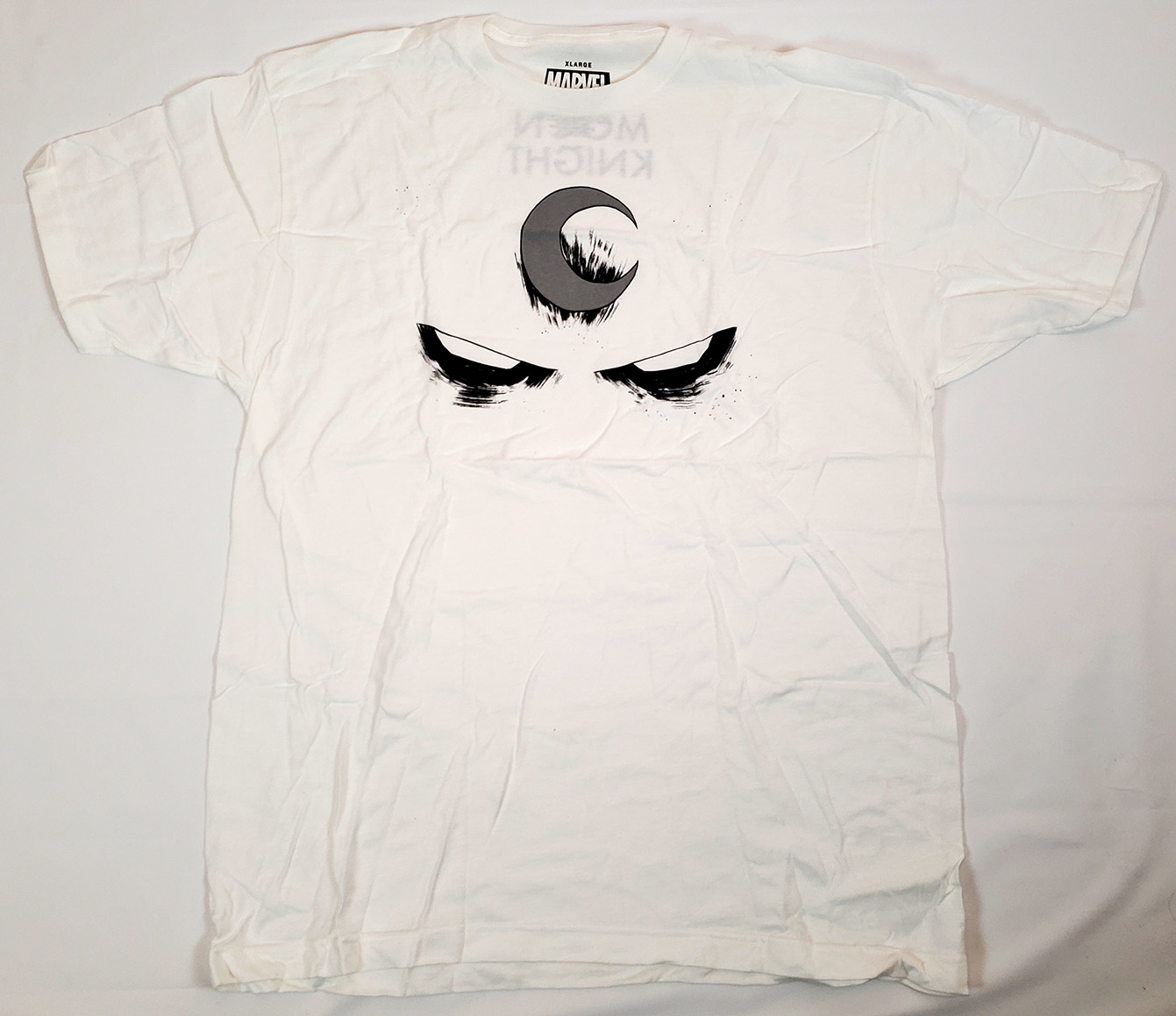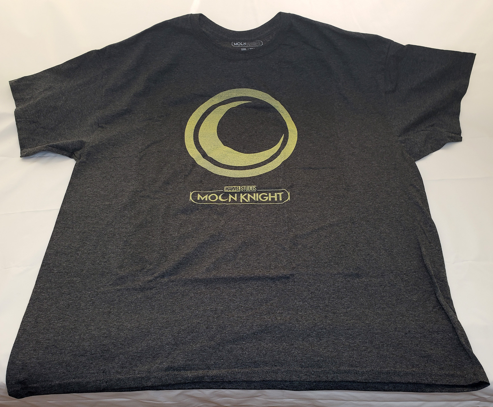 C-Life Group Ltd produced a Moon Knight shirt to tie in with the release of the Disney+ Show. It features a golden crescent emblem on it. It was likely produced in 2022 due to the licensing tie in.