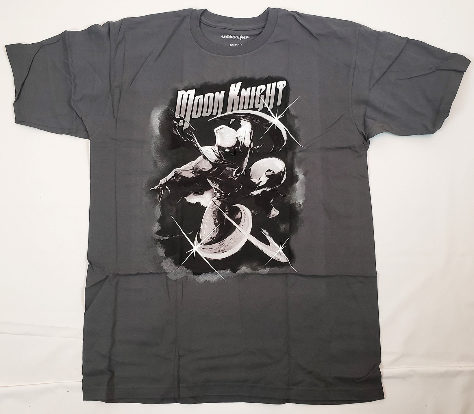 We Love Fine released a t-shirt depicting Moon Knight attacking with crescent darts. It's particularly difficult to date shirt releases because so few of them include dates on their tags.