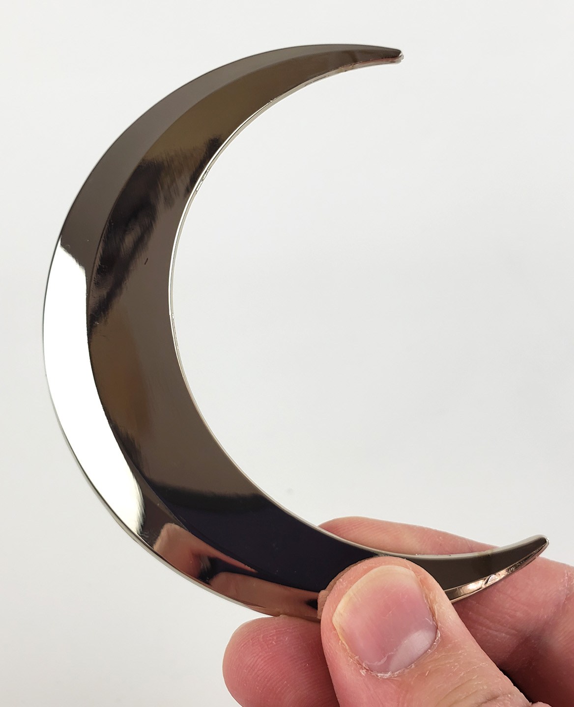 BAM Box was a monthly subscription box that included a variety of exclusive comic and pop culture items delivered monthly by mail. In 2022, one of the BAM boxes included a Moon Knight themed Crescent Blade prop replica. This was made out of solid metal and polished to a high shine. It is heavy, but thankfully not actually sharp. It features no distinguishing markings. It is one of my favorite pieces. Since it came in a subscription box, it was never sold seperately, and must therefore be purchased on the second hand market.