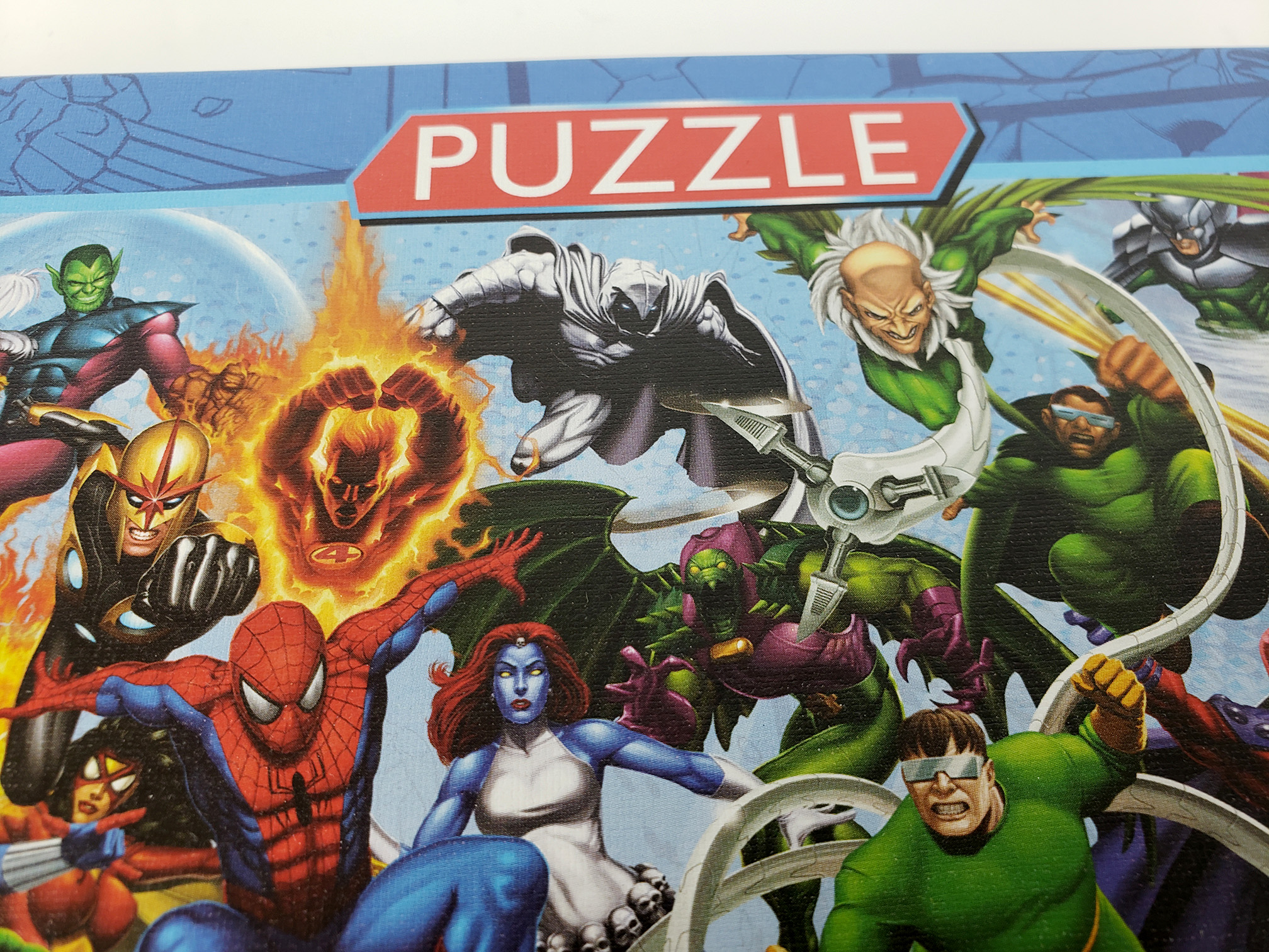 In 2012 Educa released a Marvel Heroes themed puzzle. It is a compilation/collage of various Marvel Character Stock Images. Moon Knight is featured in the selection. An image derived from David Finch's cover art for Moon Knight #1 (2006) is used. This is a 1000 Piece puzzle and is product #15193. The original retail price for this puzzle is unknown.