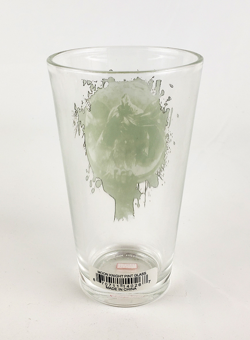 Toon Tumblers® is a line of glassware by Popfun Merchandising, LLC. that features Marvel Comics Characters. It's a standard durable Pint Glass with a Moon Knight image on one side, and the Logo on the other. This is the second Moon Knight glass they produced as part of their Series 3 line. Initial Production size is unknown, as well as the original price. This glass features art from Bill Sienkiewicz, originally seen on the cover of Moon Knight Special Edition #1. Unfortunately these glasses are hand wash only.