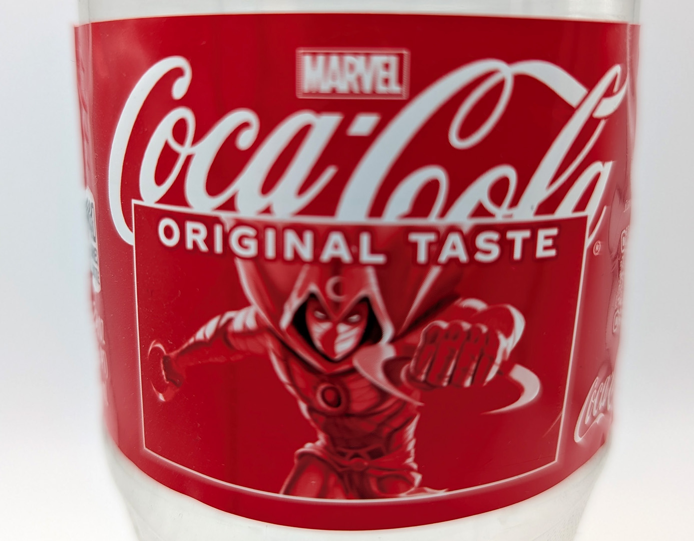 In 2024, Walt Disney and Coca-Cola launched the Coca-Cola x Marvel: The Heroes. It was a series of exclusive new package designs for Coke and Coke Zero products featuring 38 different Marvel Characters. During the campaign, the can/bottles were scannable and it would bring an AR extension up on Coca-Cola’s website. Moon Knight appeared on regular coke bottles only. I purchased mine at a local grocery store for around $2. The AR Campaign is no longer functional.
