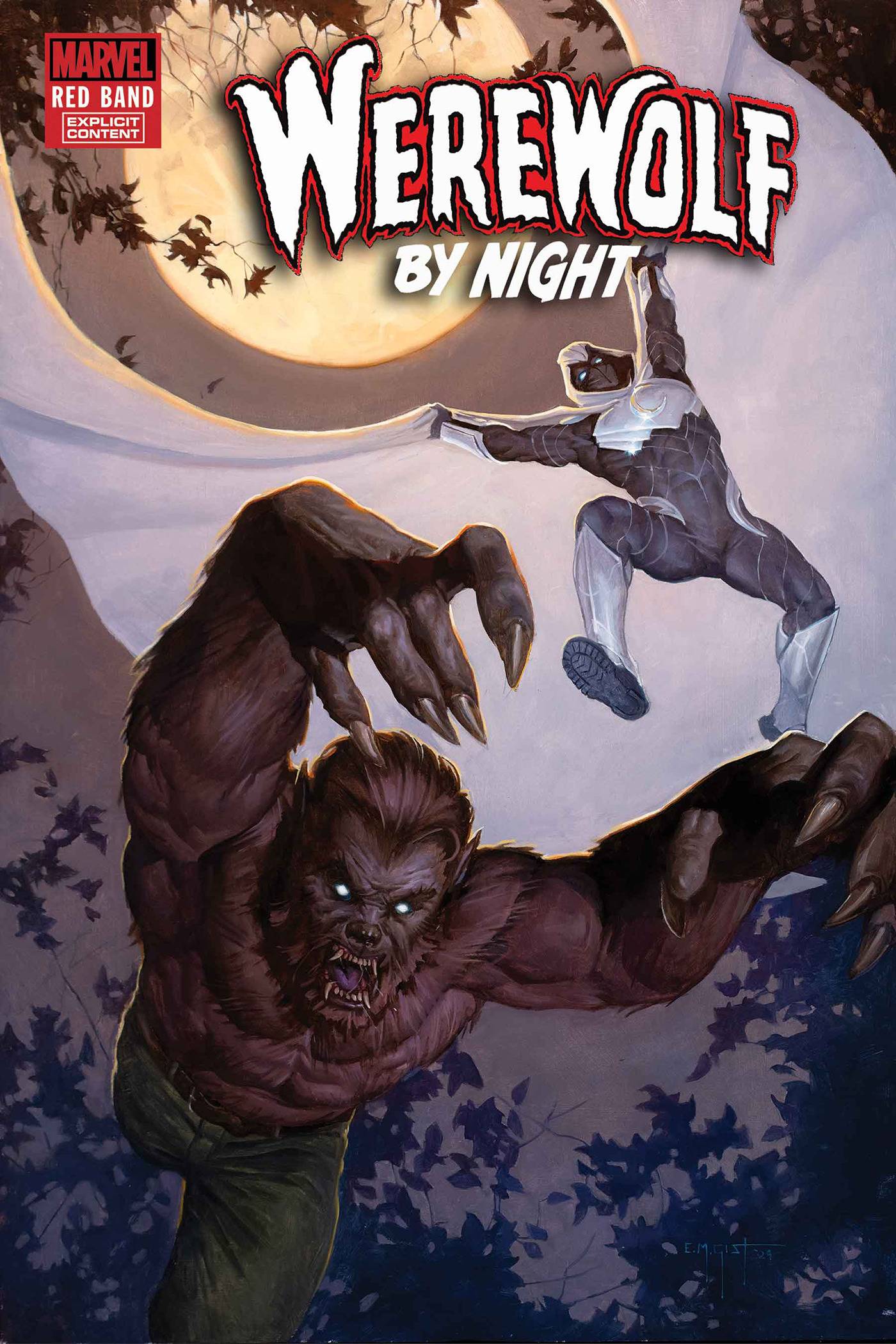 This poster was released on Oct 02, 2024. It depicts art from the Red Band Werewolf By Night #3 cover, which happens to have Moon Knight on it. Its dimensions are the standard 24x36 inches. It retailed for $8.99.