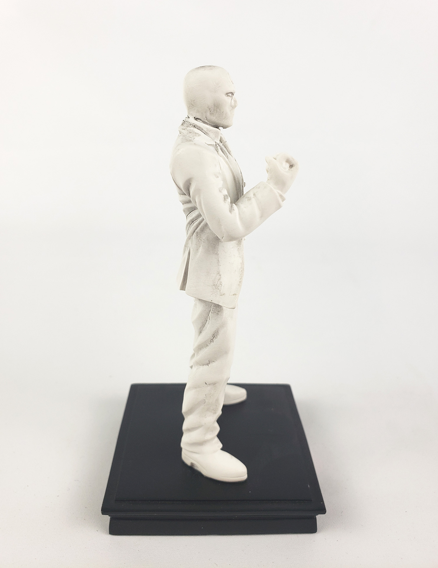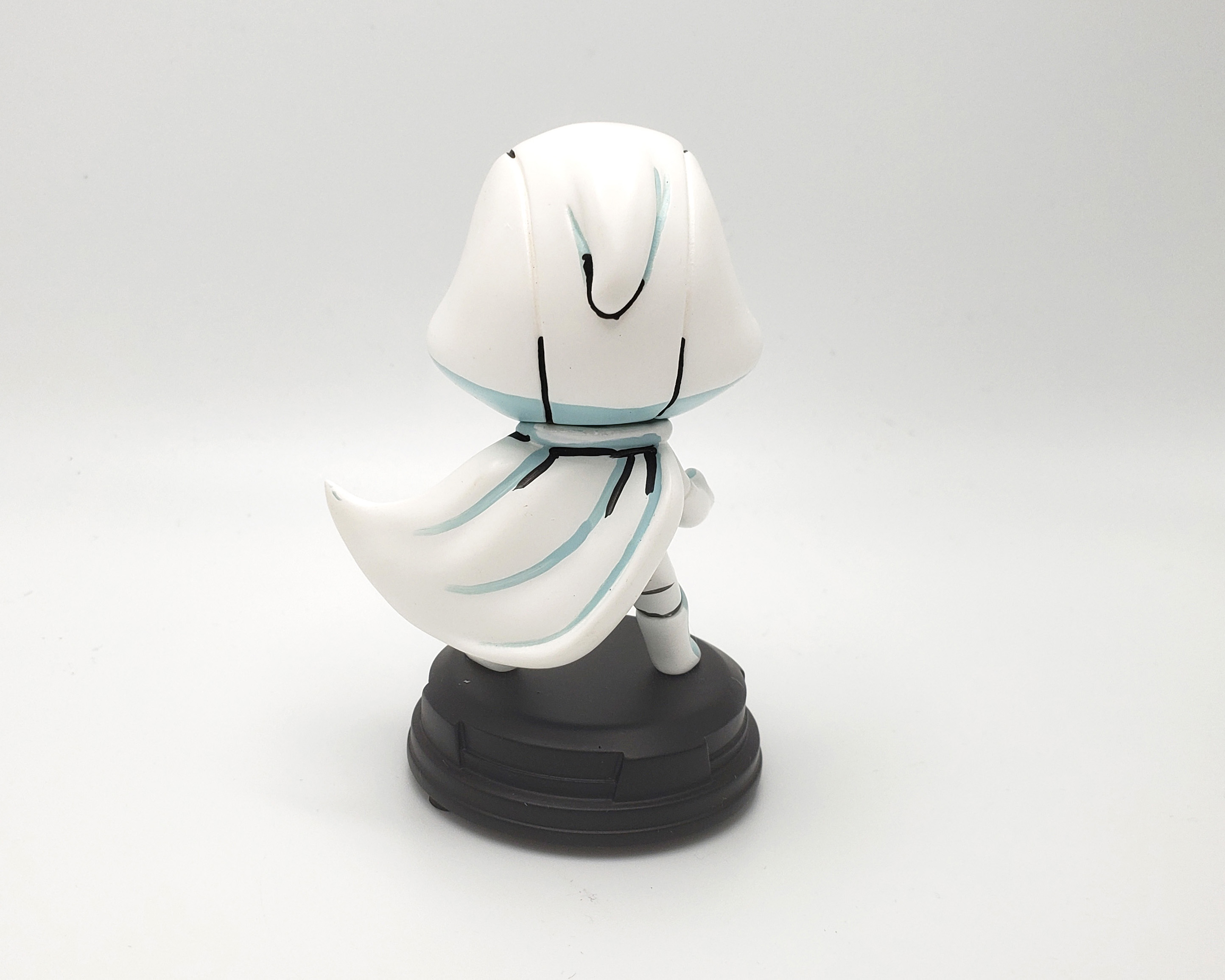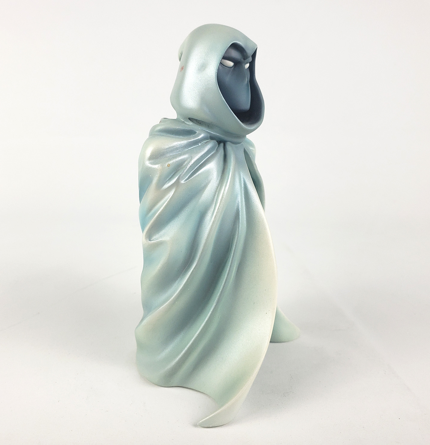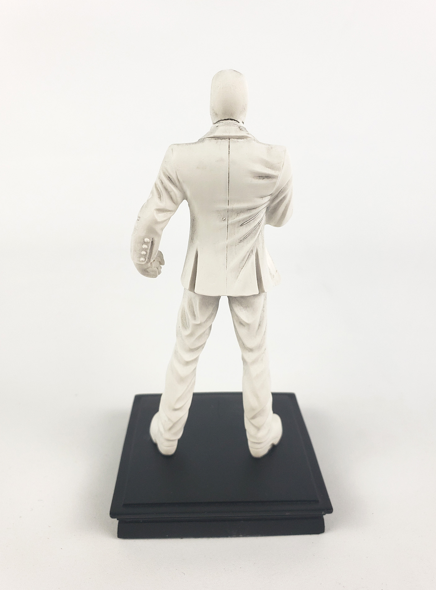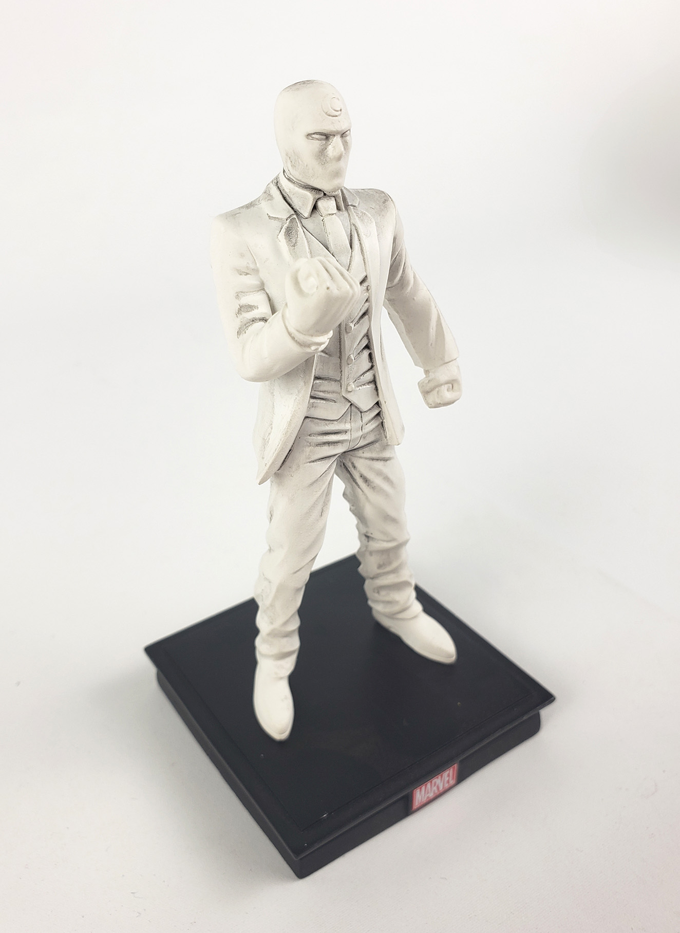 In 2006 the Fan Favorite Statue Producer Bowen Designs released their Third Moon Knight product, a painted variant of their full figure statue. It was part of Bowens Phase 3 Marvel Statues, #64 to be exact (the original silver version was #63). This variant had an edition size of only 600 statues, and launched for $210. This painted variant of the statue was painted white to reflect the white nature of Moon Knight's later costumes. This statue was sculpted by the Kucharek Brothers and came in two painted varieties. The statue comes in two pieces: the figure, and the base. Although relatively durable, the two pieces do not make a tight connection. Furthermore, it is inappropriately top heavy leading to stability issues. It needs to be displayed securely to keep it from falling over. The more limited edition size of this variant makes it considerably more rare than the silver version, and is therefore much more expensive to acquire.