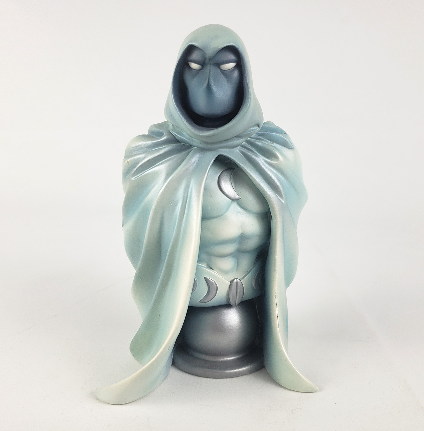 This is a listing of all the Official Moon Knight related Statues and Busts in my Collection. They are listed in order of release date, from most recent at the top to the oldest at the bottom. Statues and Busts tend to be one of the more expensive items that a collector can pursue. They often have very limited production runs and become extremely expensive to acquire after the initial release. Moon Knight fans are fortunate in that Moon Knight has been realized in numerous high quality busts from various companies over the last several decades.