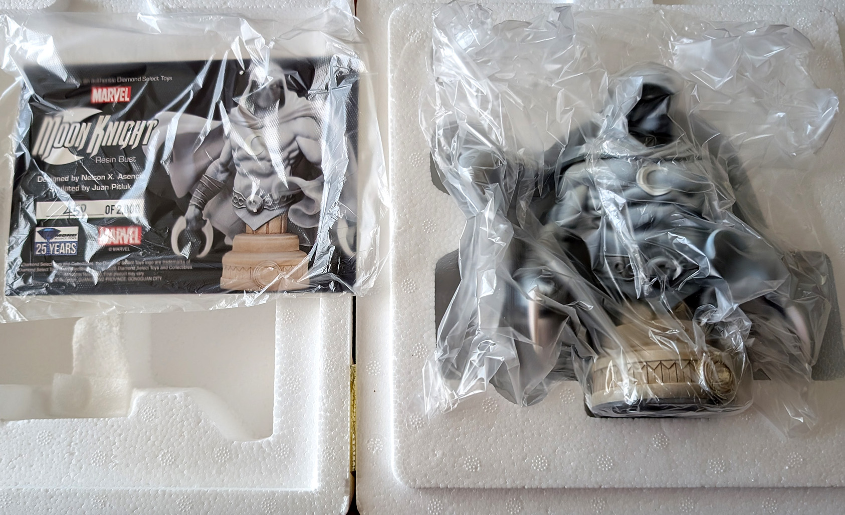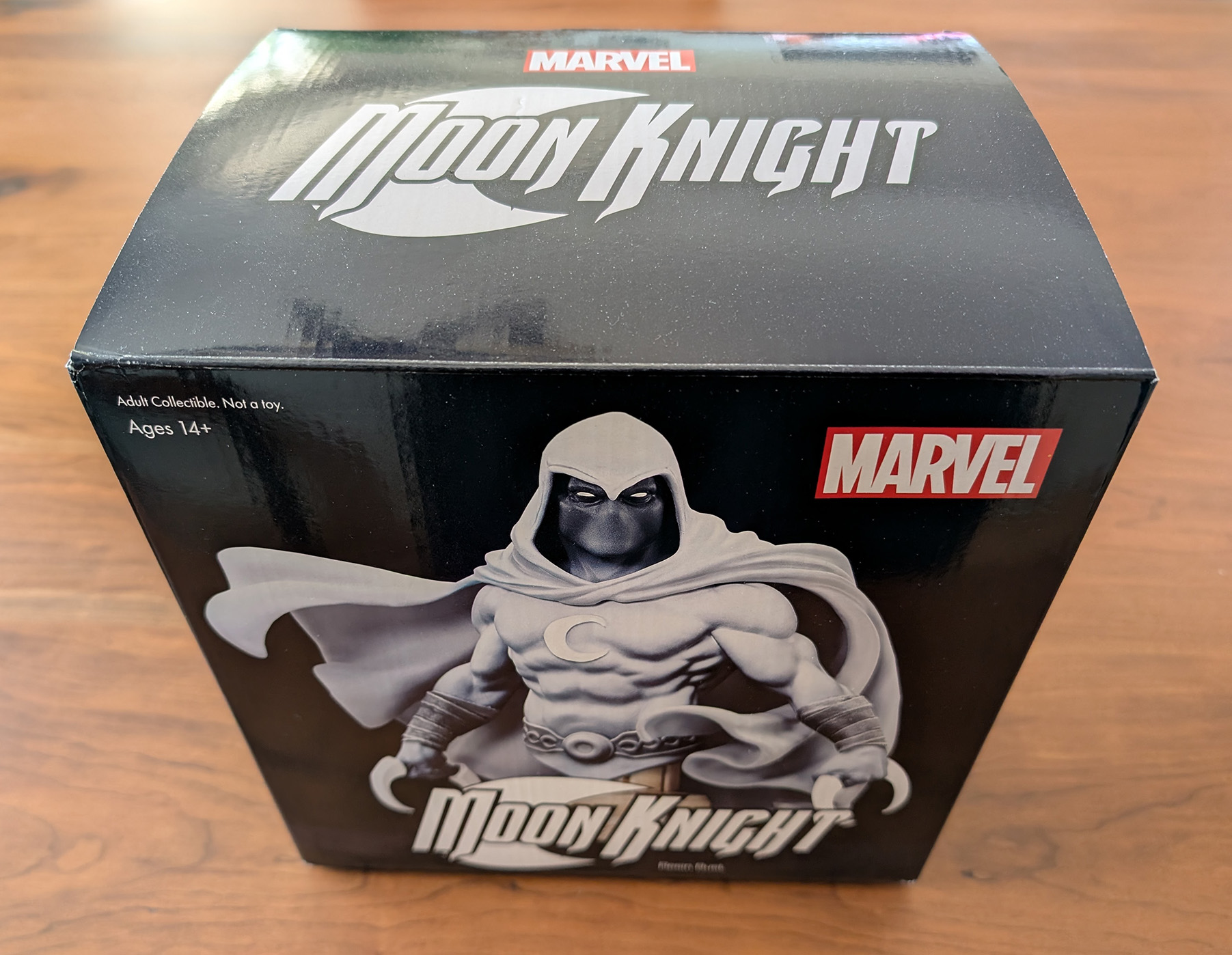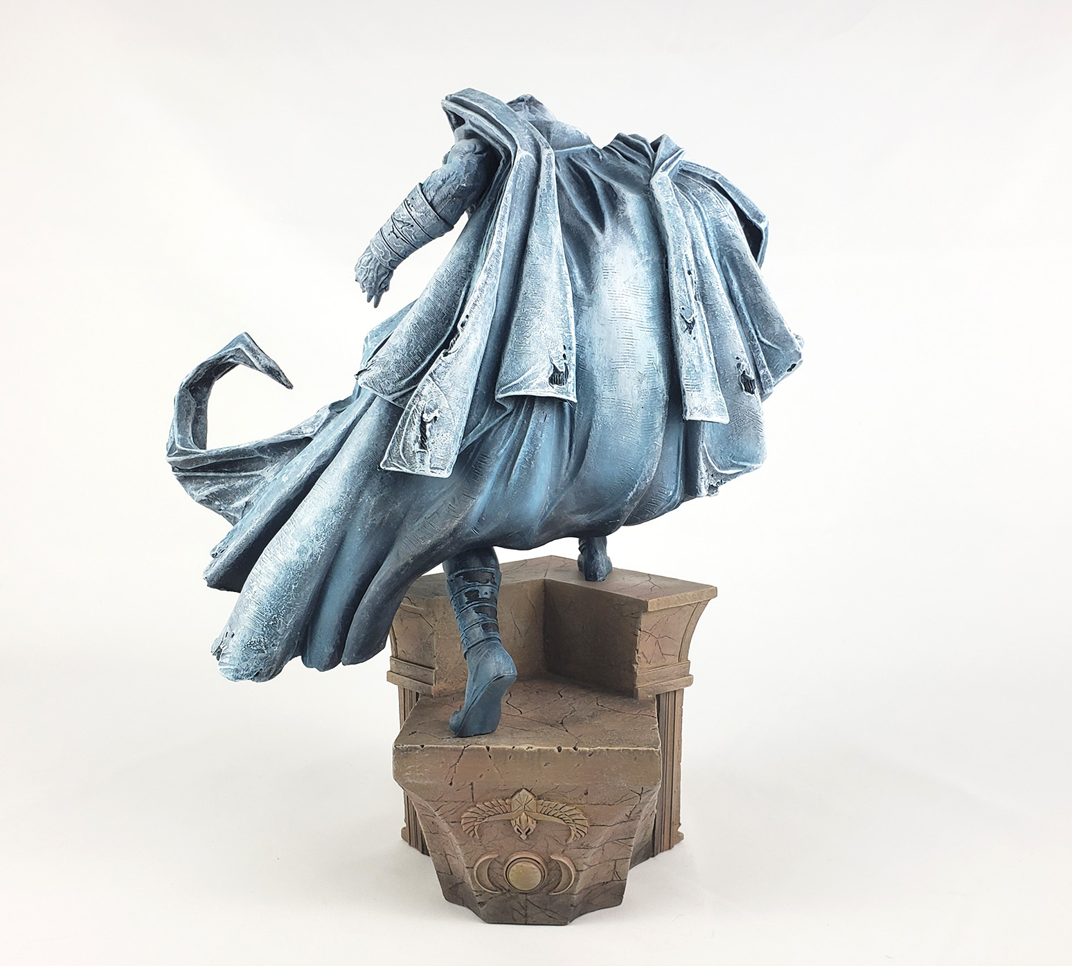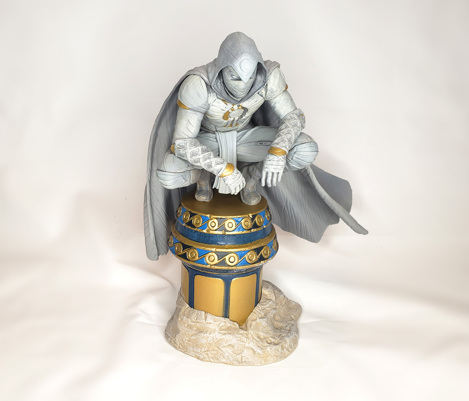 This is the first Statue based on the MCU version of Moon Knight that was featured in the Disney+ Show. It was released by Diamond Select Toys in May of 2023. It stands just over 10” Tall, and was designed by the Silva Brothers and sculpted by Aduardo Trujillo. The price on release for this statue was a very reasonable $59.99. As noted in the title, this is a PVC statue, and is therefore much lighter than standard resin or ceramic statues. It feels considerably “cheaper” and is quite light. However, the sculpting is absolutely fantastic, and the paint job is very well done. It’s also quite large compared to many of the previous busts. This is ideal for people who may have display areas that are at risk of bumping or interference, as it is far less fragile than most of the standard statue fare.