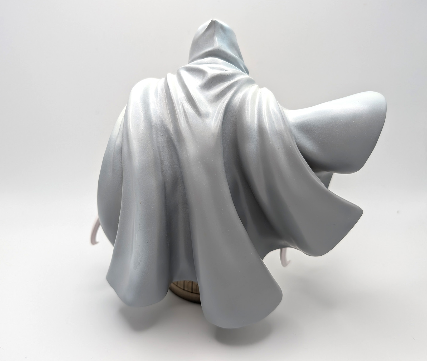Released in April of 2025, this statue stands as the final Moon Knight piece to ever be released by the now defunct Diamond Select Toys (Although fingers are crossed for the company to reform post-bankruptcy). But I have to say, what a way to go out on! This 5 Inch (not including base), 1/7 scale, resin mini-bust is a sight to behold. Limited to only 2,000 pieces, this comic themed Statue was designed by Nelson X Asencio and sculpted by Juan Pitluk. It retailed for the not outrageous price of $130. The airbrush paint job creates a soft shadow effect that makes Moon Knight look more realistic and lifelike than many other iterations. It is a solid feeling sculpt with a very robust cape. It stands sturdy, but it does have more than a few sharp points. It comes with a certificate with the edition number on it. I absolutely love this statue, and it has been on my computer desk since its release.