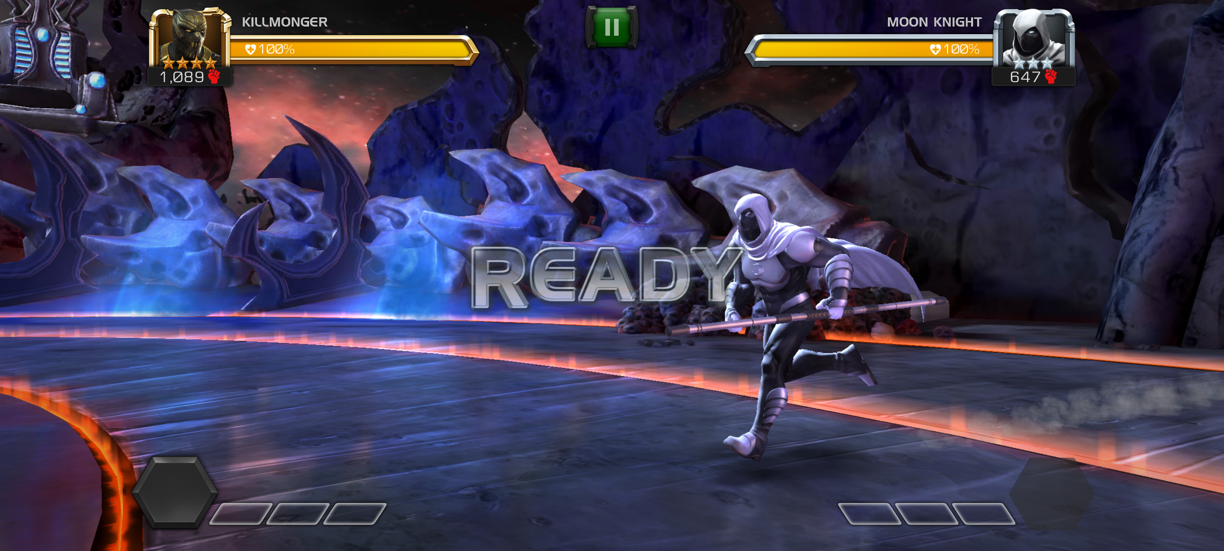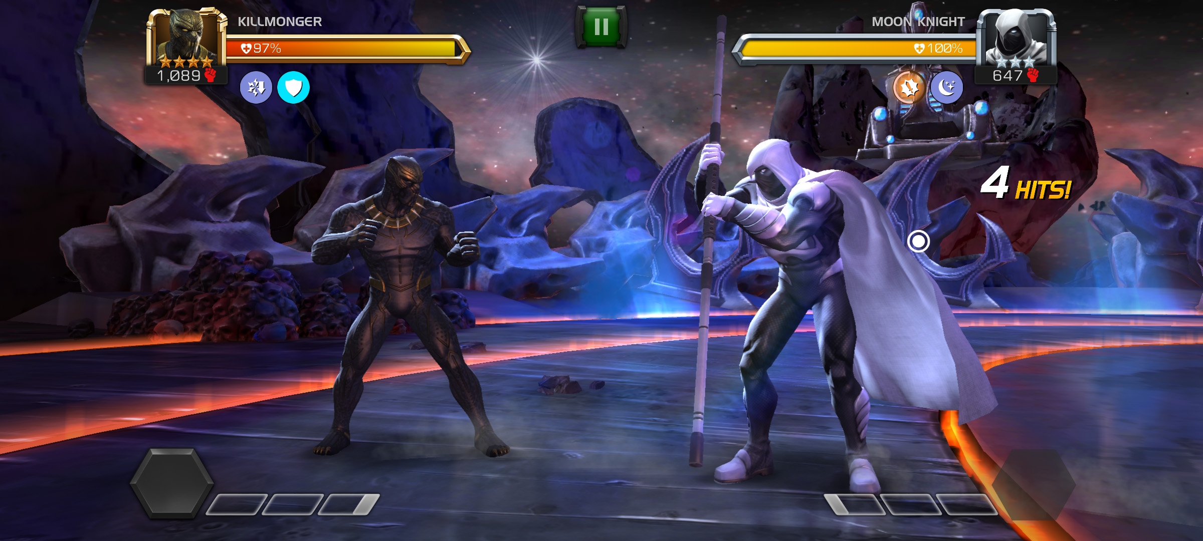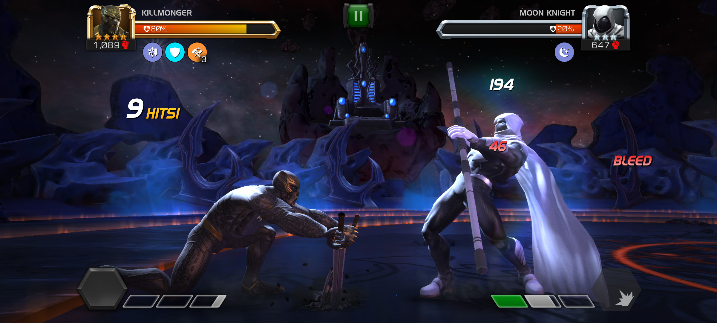 Marvel Future Fight by Netmarble games is a RPG strategy game for mobile devices. It is based heavily on the use and management of character stats and abilities. Although you only control one character at a time, you manage a team that can include any of the 187 playable characters within the game. Many of these characters must be unlocked, including Moon Knight. Characters can be leveled within three teirs which grant them special abilities and attacks. Some of these abilities are based on their chosen costume, of which Moon Knight has 2.